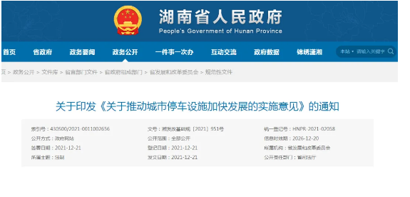 湖南省四部門聯合發布關于印發《關于推動城市停車設施加快發展的實施意見》的通知